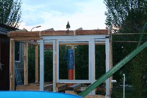 Hier ein paar Bilder vom Aufbau der Hütte. Die Balken waren zu 99% gebraucht aus einem alten Wintergarten.