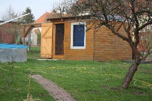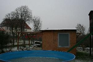 Hier die Hütte mit Ausleger für das Rolldach nach Abriss der alten Hütte